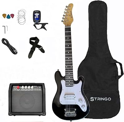 Black 30 Inch Kids Electric Guitar Beginner Kit, Set Includes 20W Amplifier 3 Picks, Shoulder Strap, Tuner, Bag Case