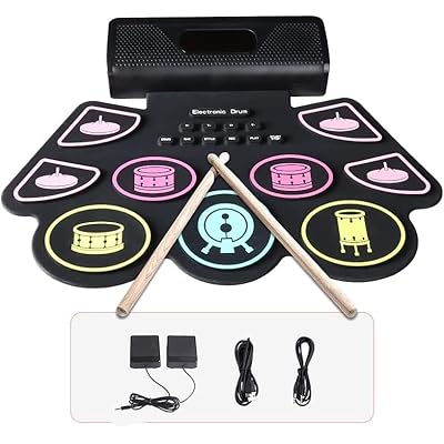 Electronic Drum Kit with 9 Pads Coolmusic Portable Roll-Up Drum Pad E-Drum Kit Integrated Dual Stereo Speakers E-Drum for Beginners Black