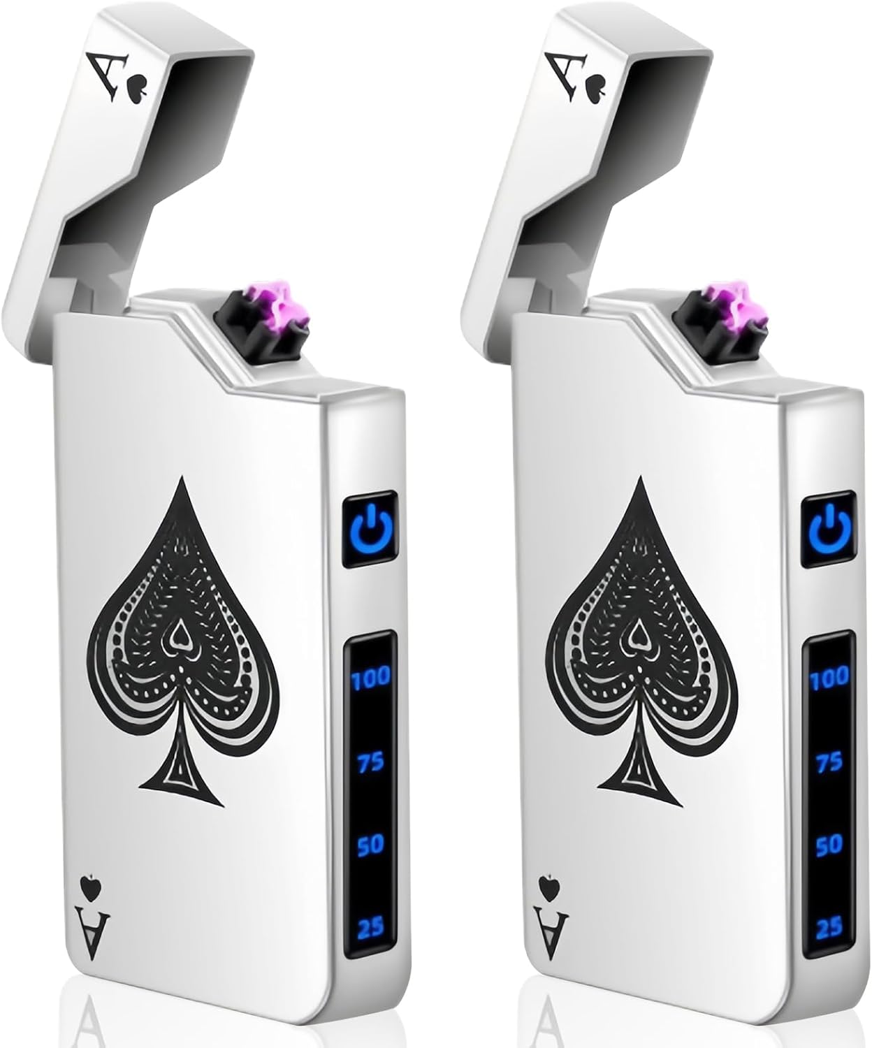 Pack of 2 USB Electronic Lighters Electric USB Lighter Arc Lighter LED Dual Arc Lighter with Battery Indicator Windproof Plasma Lighter Release Lighter at the Touch of a Button Silver